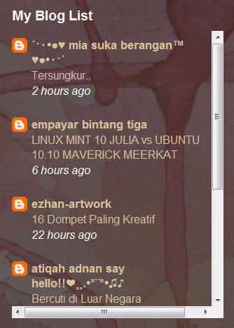 baeklah, hari ni nak share dengan korang macamane nak buat scroll pada blog list..kebetulan, ada blogger yang tanya kat shout box pasal tutorial ni..hehee..
